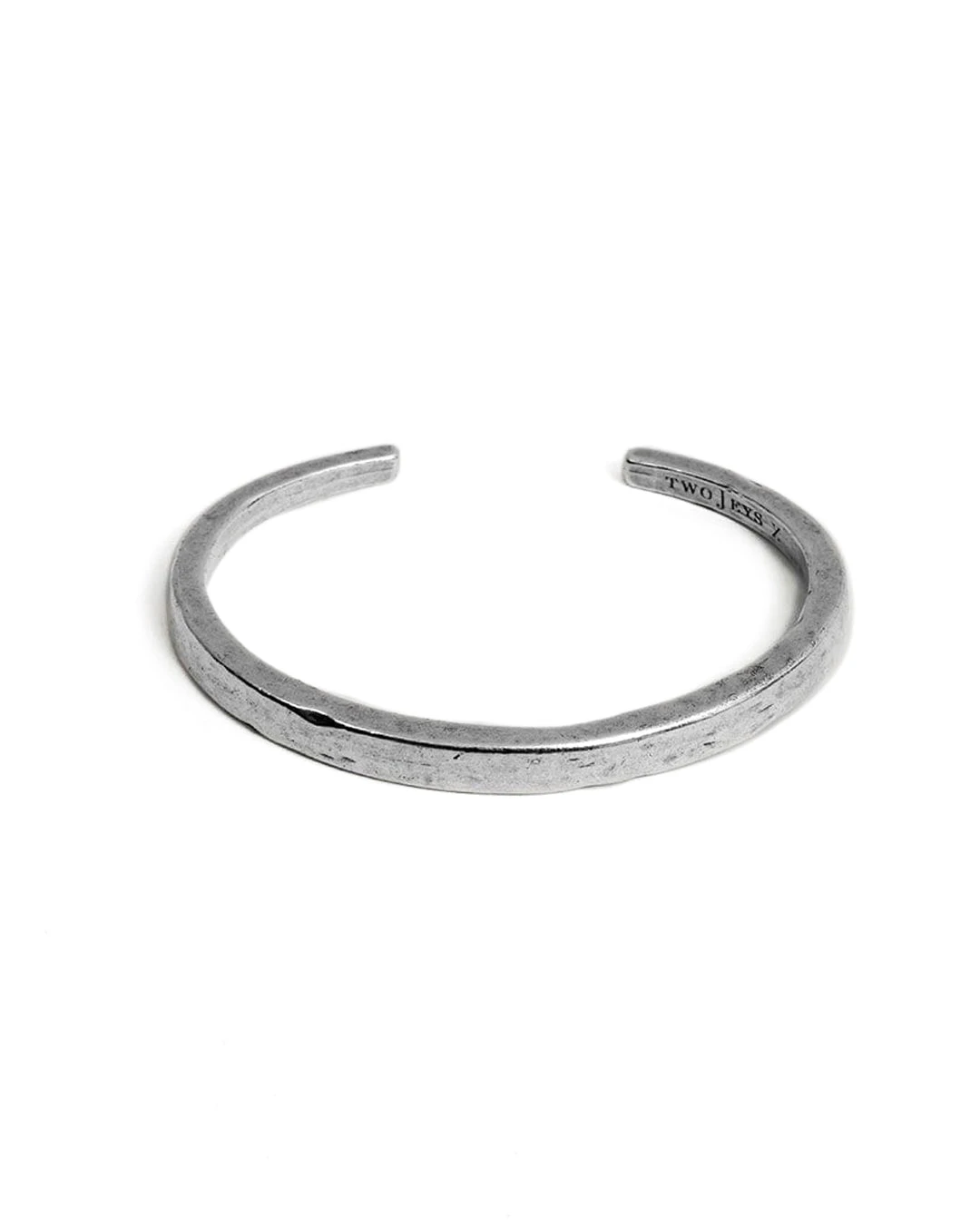 The 02 Bracelet is a basic everyday cuff that slides on from the side and has a handcrafted finish, combinig bold with simplicity.