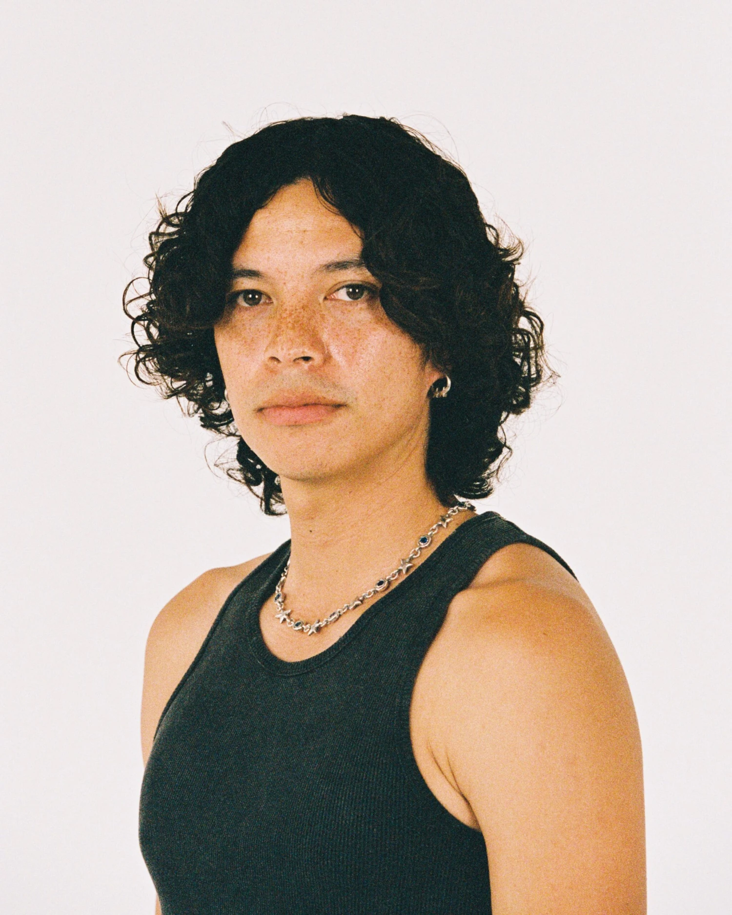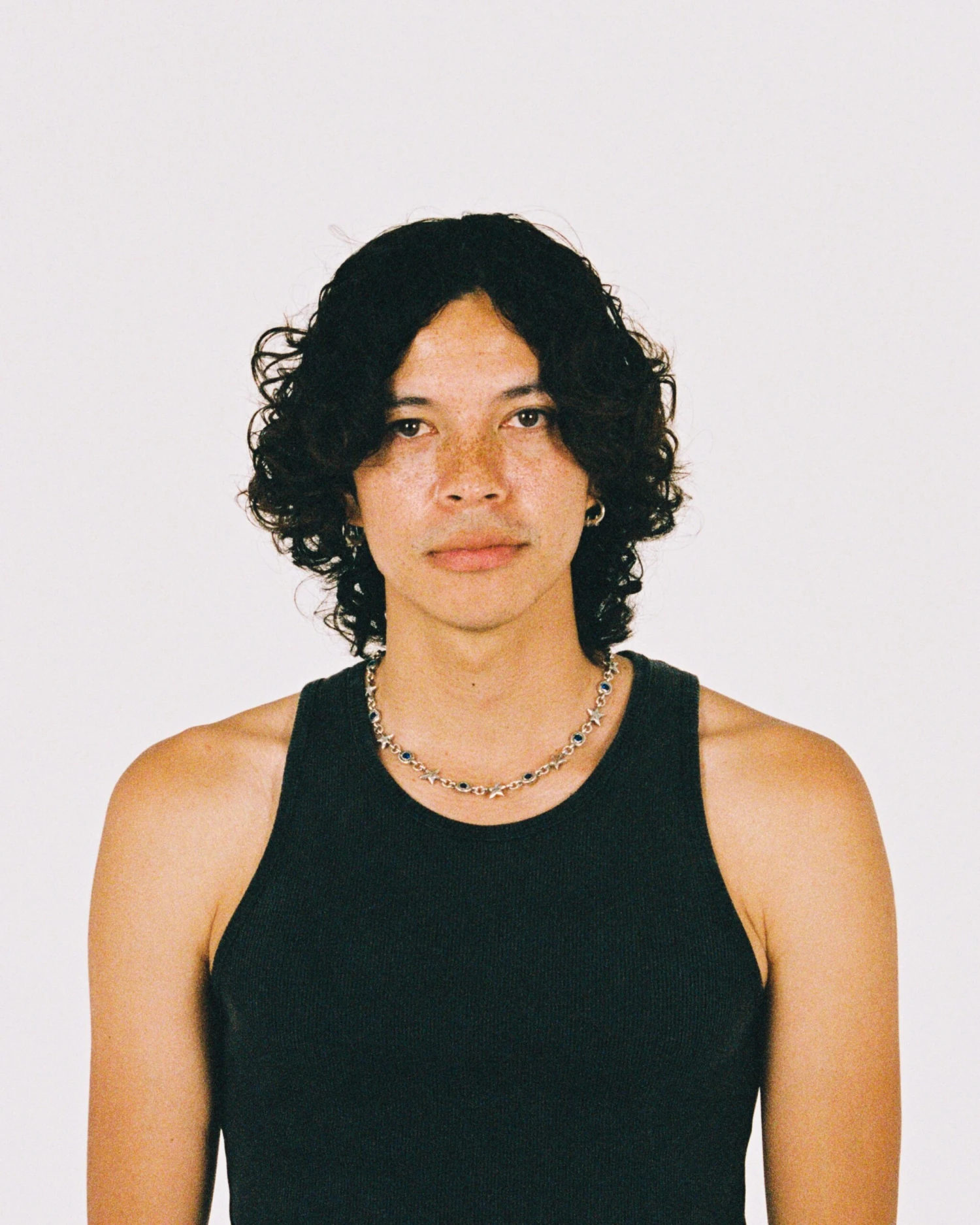 The Blue Squadra Necklace is a brass base chain composed of stars and set stones, with a lobster clasp.