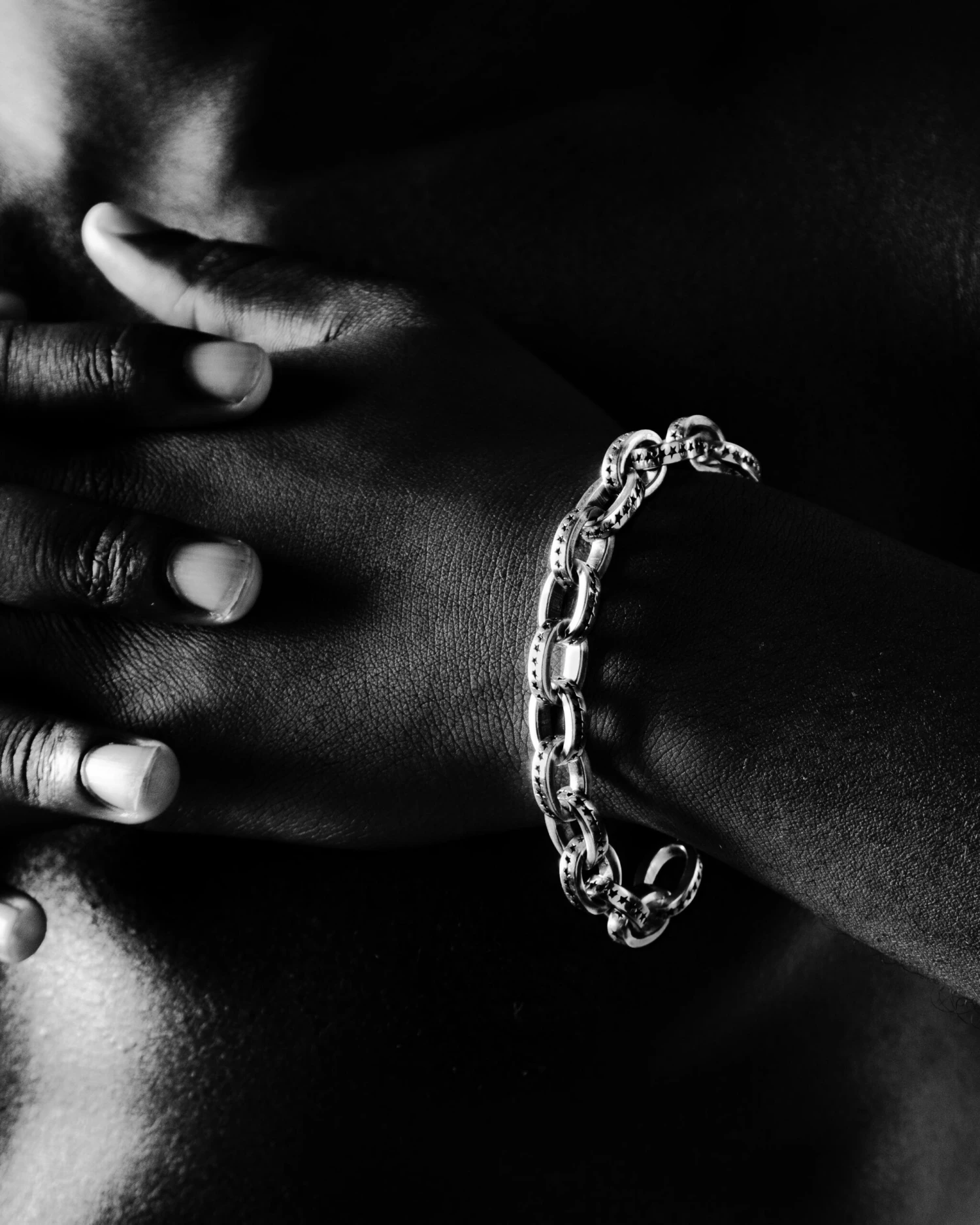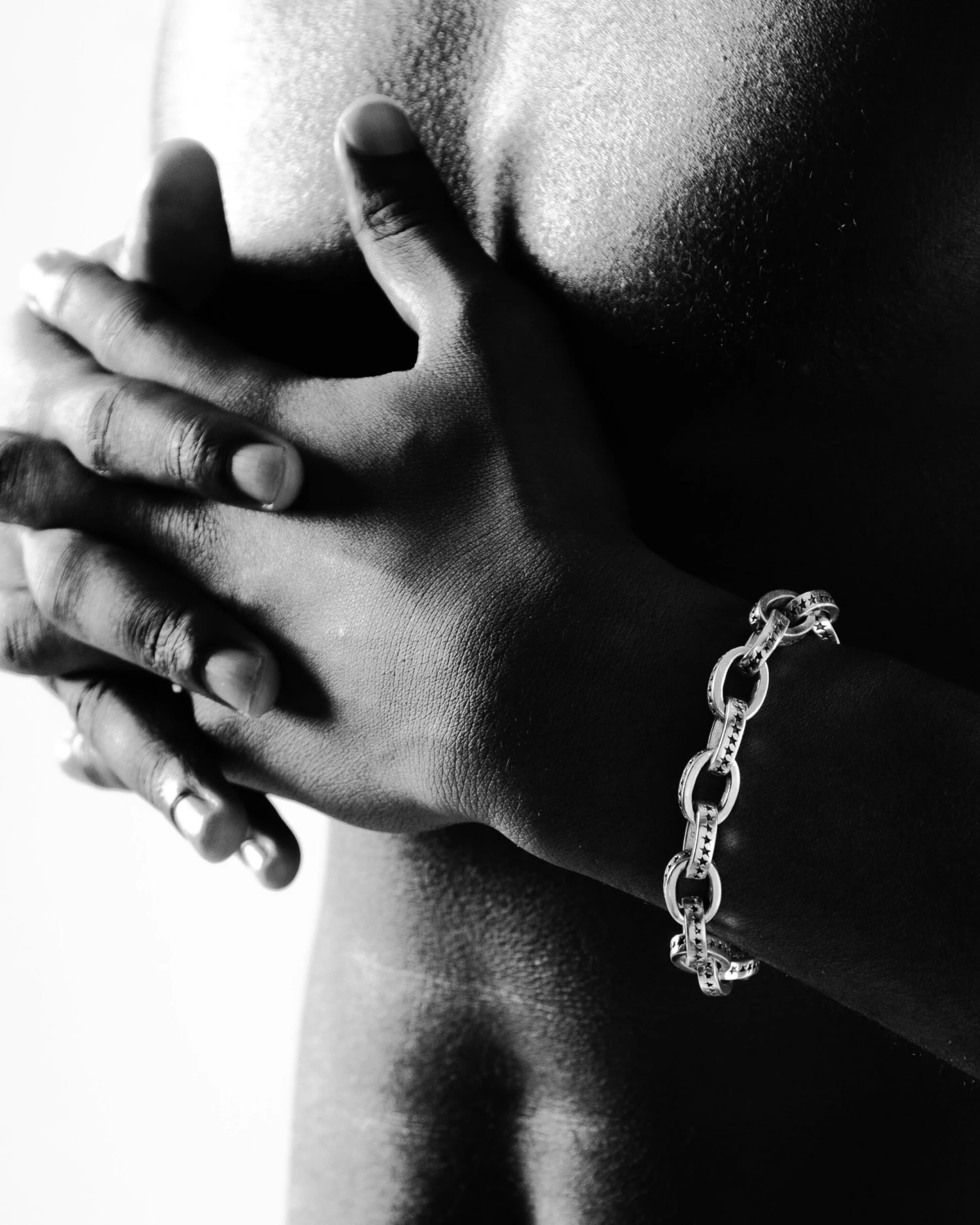 925 sterling silver bracelet. Bright polished finish with contrasting oxidized finish.