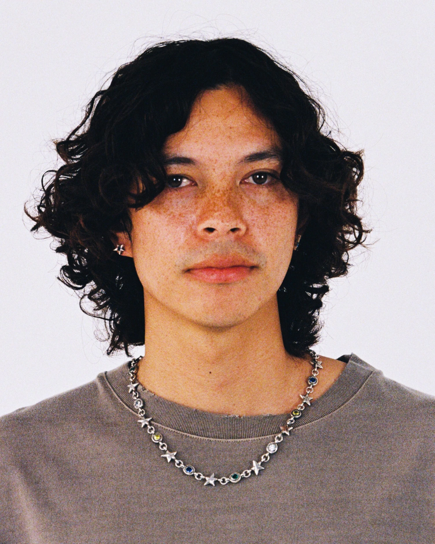 Brass base chain composed of stars and set stones, with a lobster clasp.