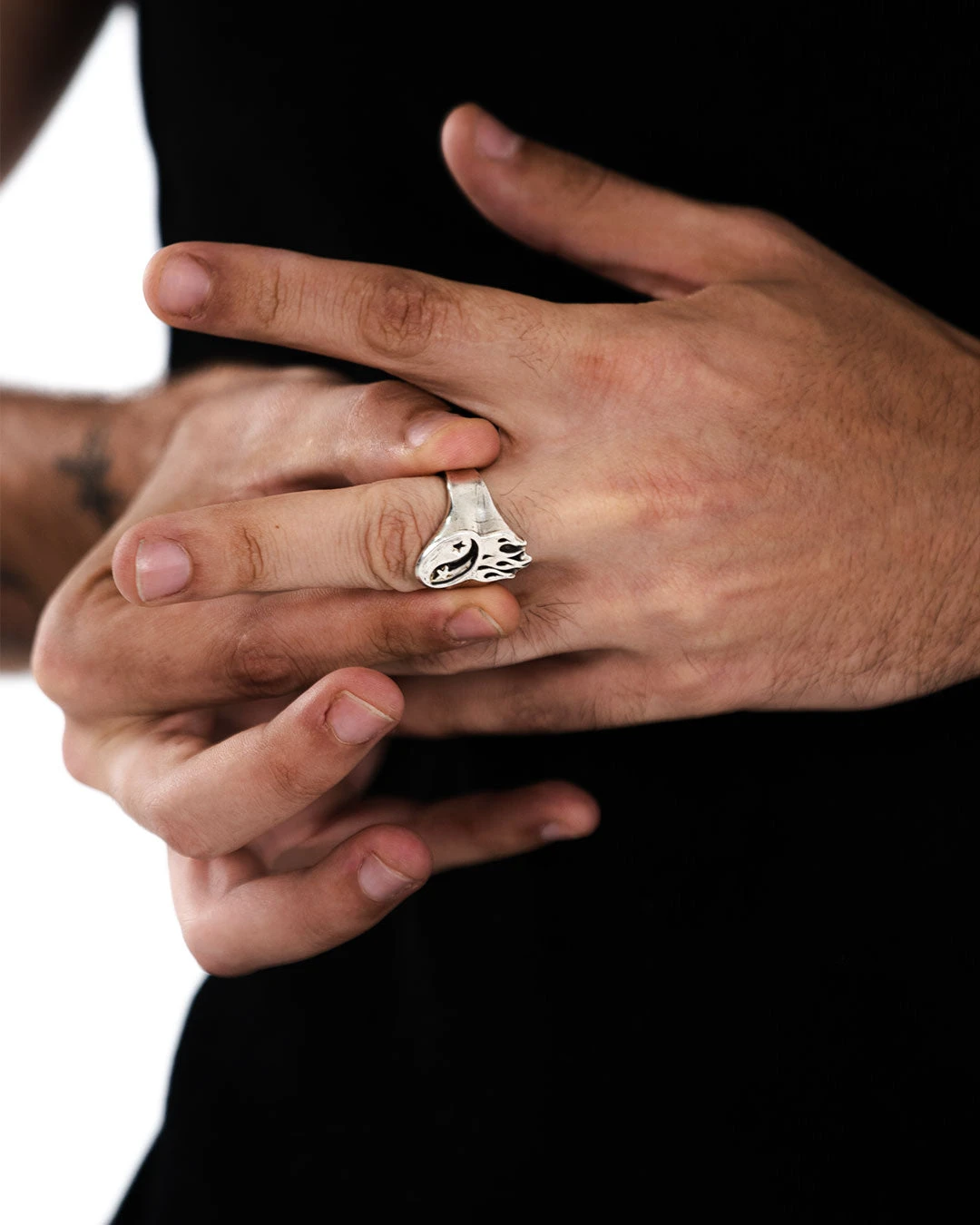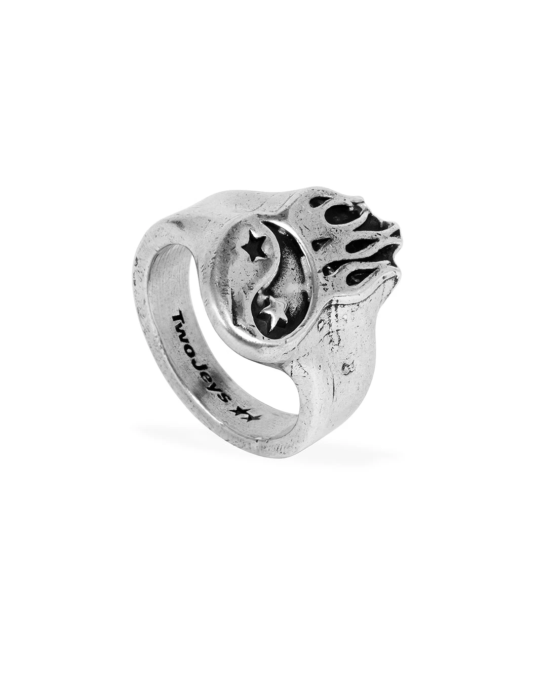 One Energy Stamp with rounded edges, handcrafted & vintage feeling details. Custom One Energy logo engraved on the top & TwoJeys logo engraved inside. Brass base with a high quality 12 microns silver bath.