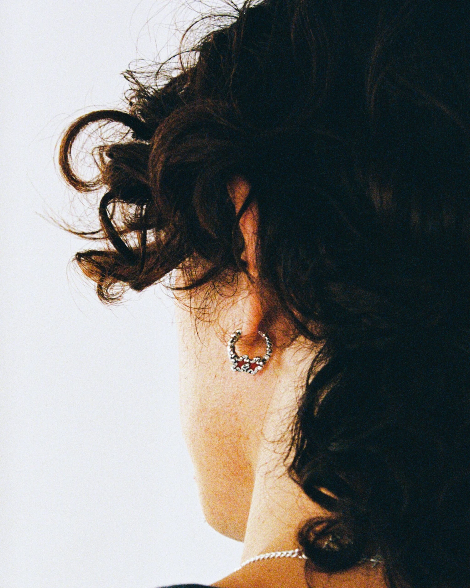925 sterling silver earring. Bright polished with contrasting oxidized finish and enameled icons. Hinge closure. Comes in a pair.