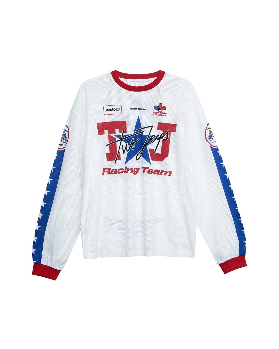 The new Track Jersey, is a mesh long sleeve shirt that features scree printed graphics on all arround the fit.